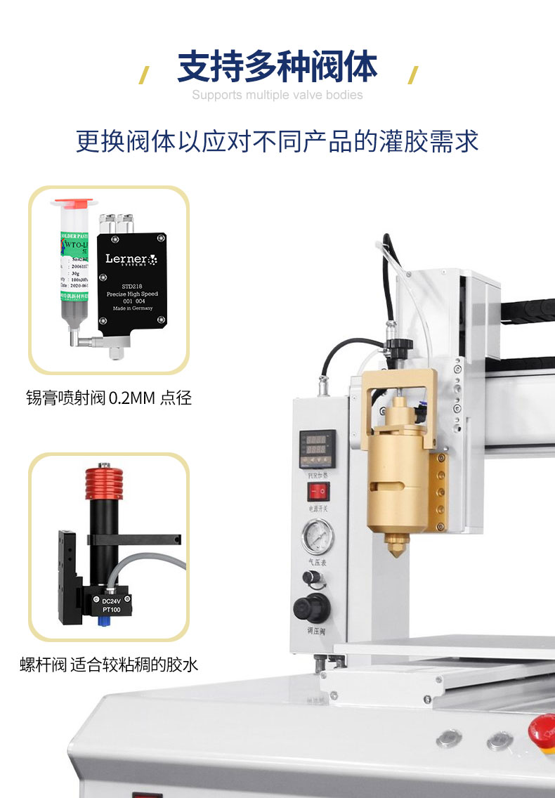 可实现快速点胶粘接、灌注、涂层、密封、填充等工艺,适用于LCD液晶屏、COB、扬声器、喇叭、电源适配器、电子玩具、鸣器、电子元器件、家用电器等领域。