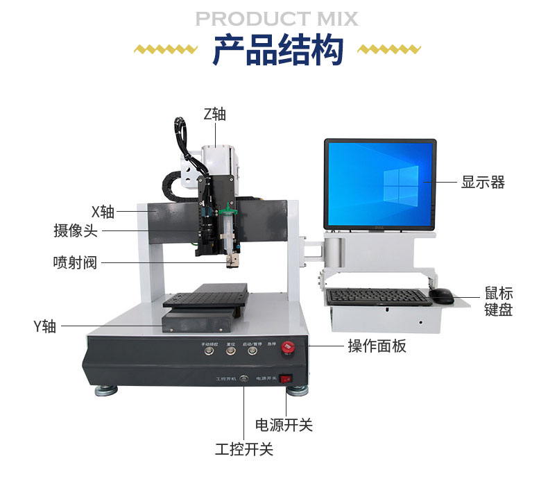 可实现快速点胶粘接、灌注、涂层、密封、填充等工艺,适用于LCD液晶屏、COB、扬声器、喇叭、电源适配器、电子玩具、鸣器、电子元器件、家用电器等领域。