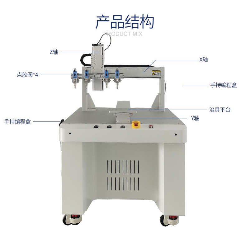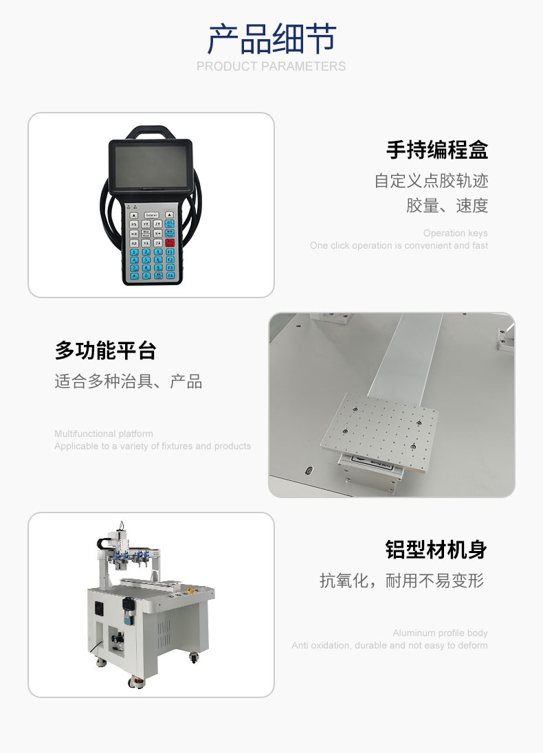 落地式三轴自定义涂胶轨迹,四头出胶效率更高,非标定制。